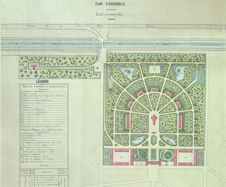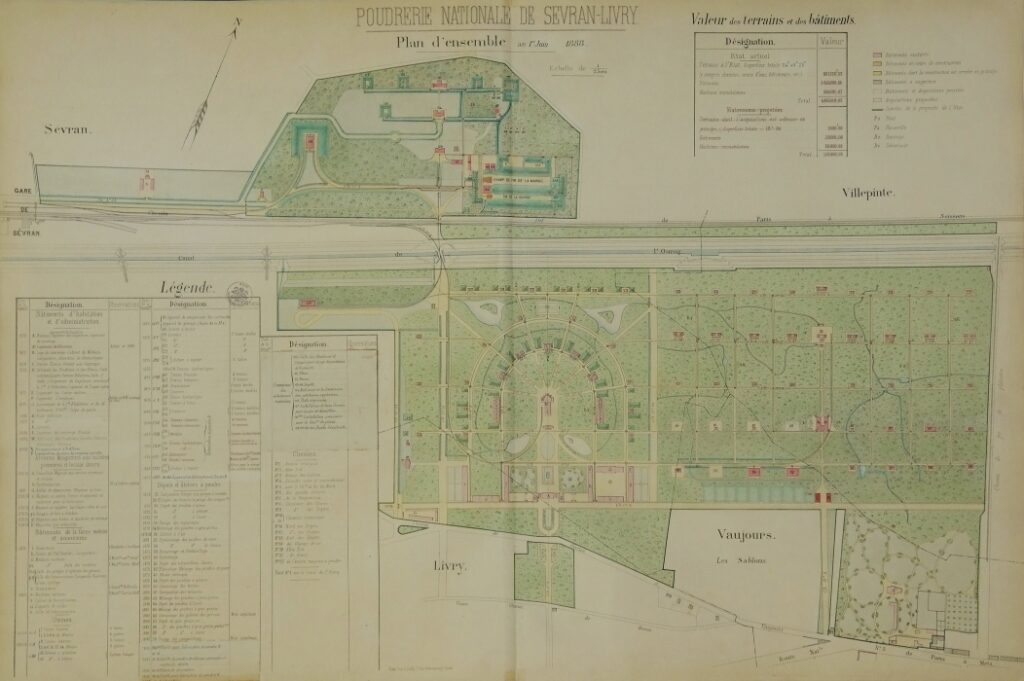 La Poudrerie nationale de Sevran-Livry, décidée sous le Second Empire et ouverte en 1873, la structure paysagère et l’empreinte bâtie du site demeurent indissociables de l’histoire du parc. Le choix d’implantation répondait à des impératifs de sécurité tout en tirant parti d’une desserte logistique efficace (réseaux fluvial et ferroviaire). L’adoption de la vapeur comme source d’énergie motrice illustrait alors une avancée technologique notable, emblématique de l’esprit d’innovation de l’époque.